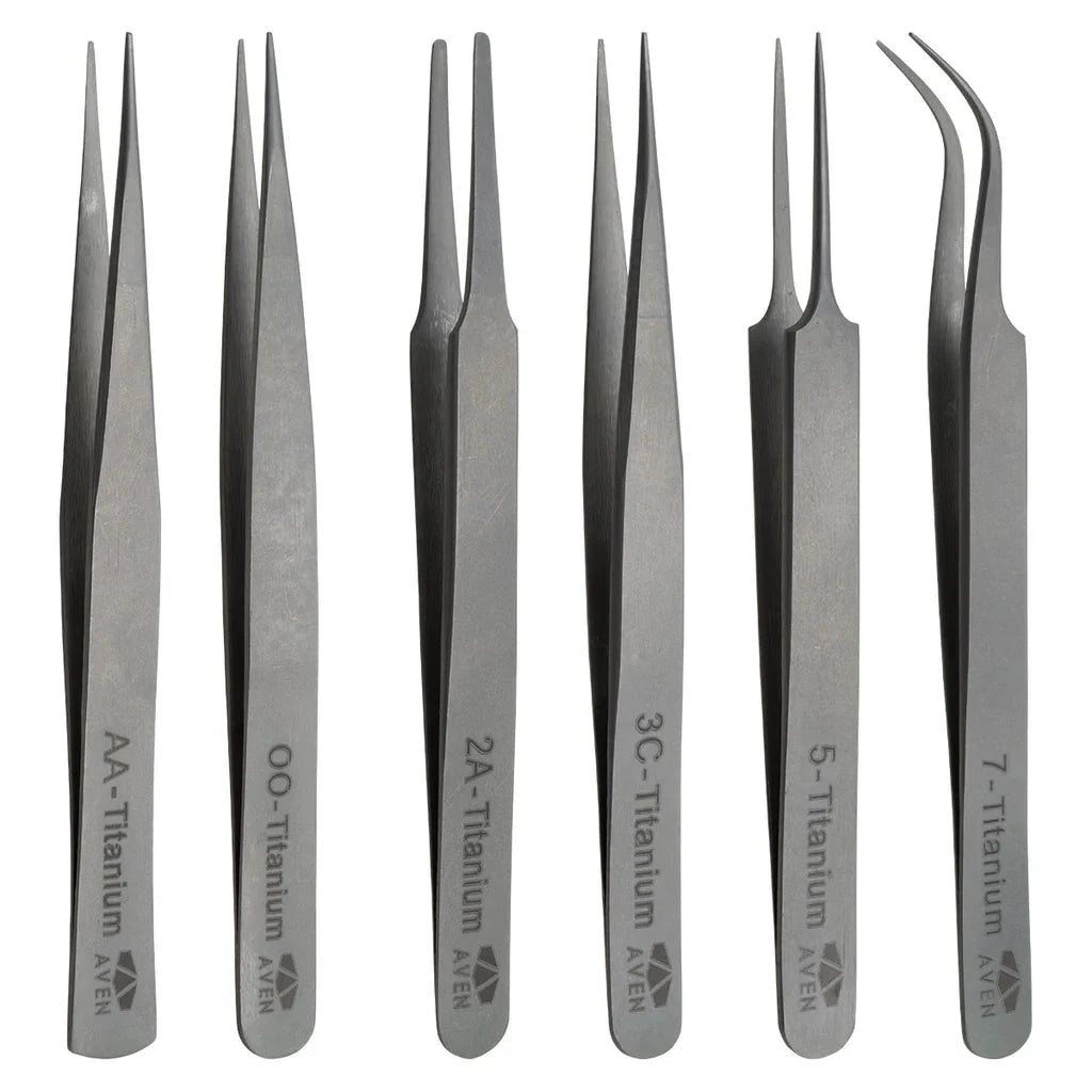Get professional-grade precision and durability with the Aven Titanium 6-Piece Tweezer Set — built for critical environments and unmatched reliability.