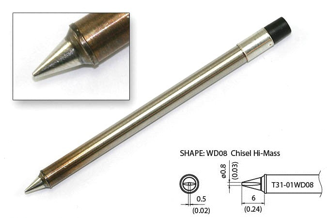 Hakko T31-01WD08 Tip,Chisel,0.8 X 6mm,IH,450°C/840°F,FX-1001