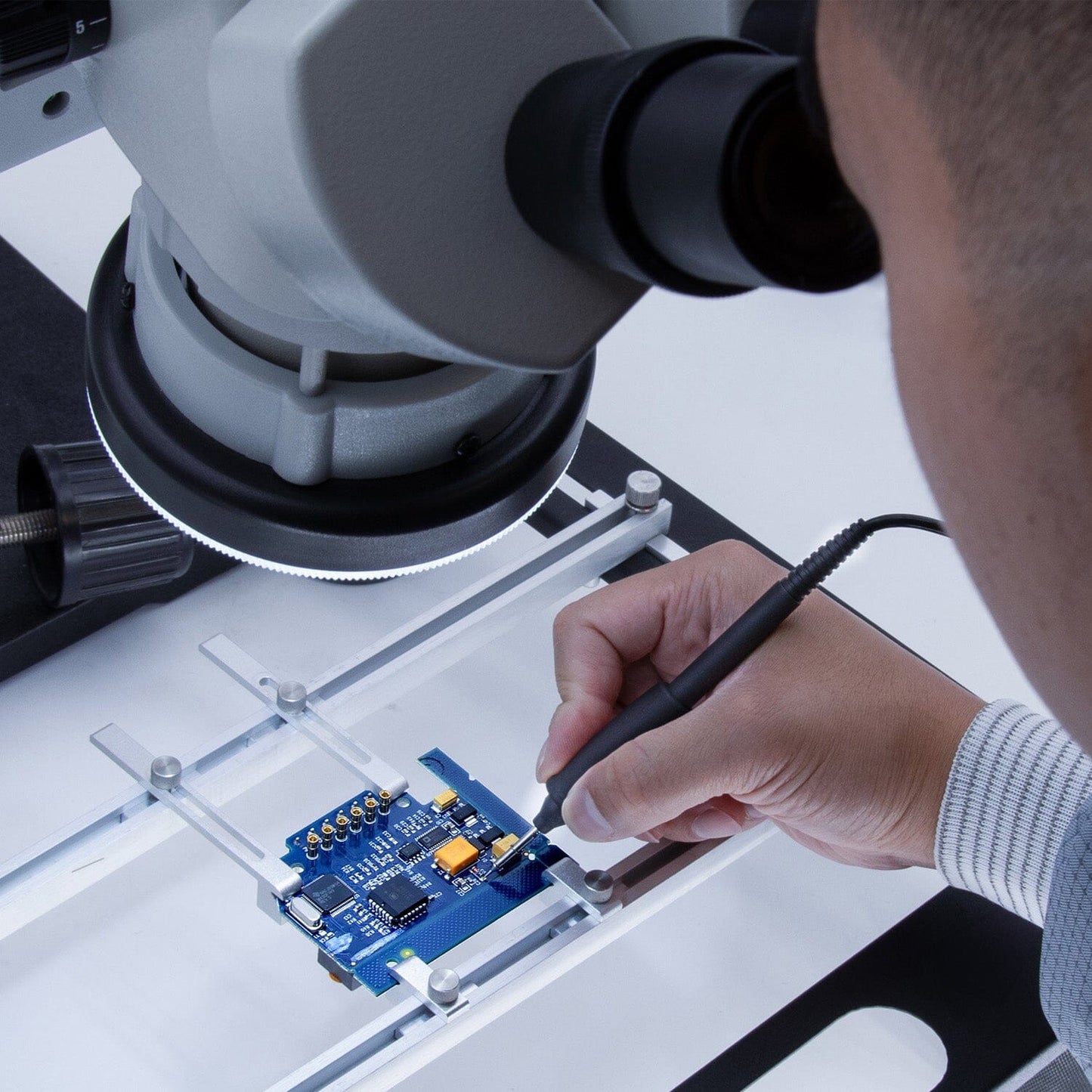 Upgrade your Metcal MX Systems with the MicroFine Handpiece & Workstand Kit. Designed specifically for working under the microscope, the MicroFine Handpiece allows for precise and accurate soldering with various cartridge options. The included workstand provides hands-free tip extraction, adjustable cradle, and integrated brass cleaning, enhancing your soldering experience.