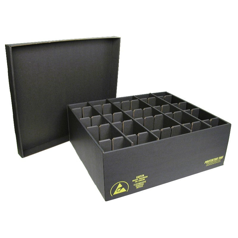 - Shields ESD sensitive items from charges and electrostatic discharges (with lid in place)