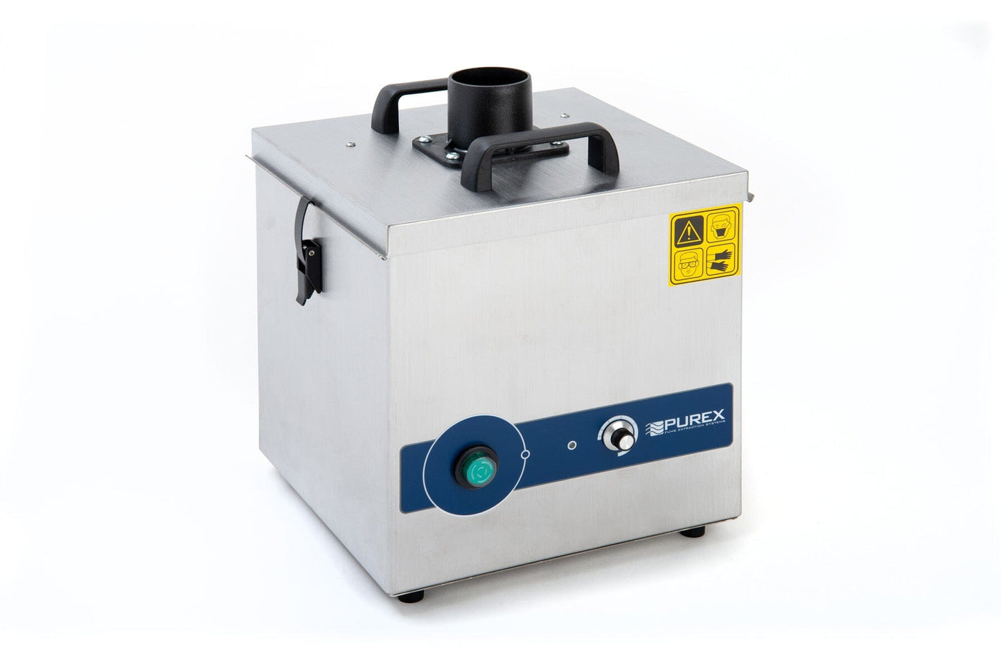 Purex FumeCube Single Port analogue units are an economical choice with same quality build and functionality; less digital displays. All units come equipped with filter blocked warning capabilities; both visual and audible which helps avoid down time. This unit comes standard with a HEPA/Chemical main filter and pre-filter pad. See brochure for application specific main filters. 1-year warranty included on machine.
